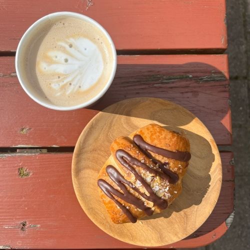 Kom og få kop kaffe og en valgfri snitte eller et smurt rundstykke til kun 35kr.